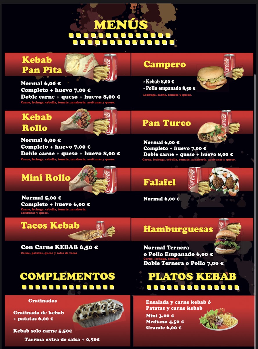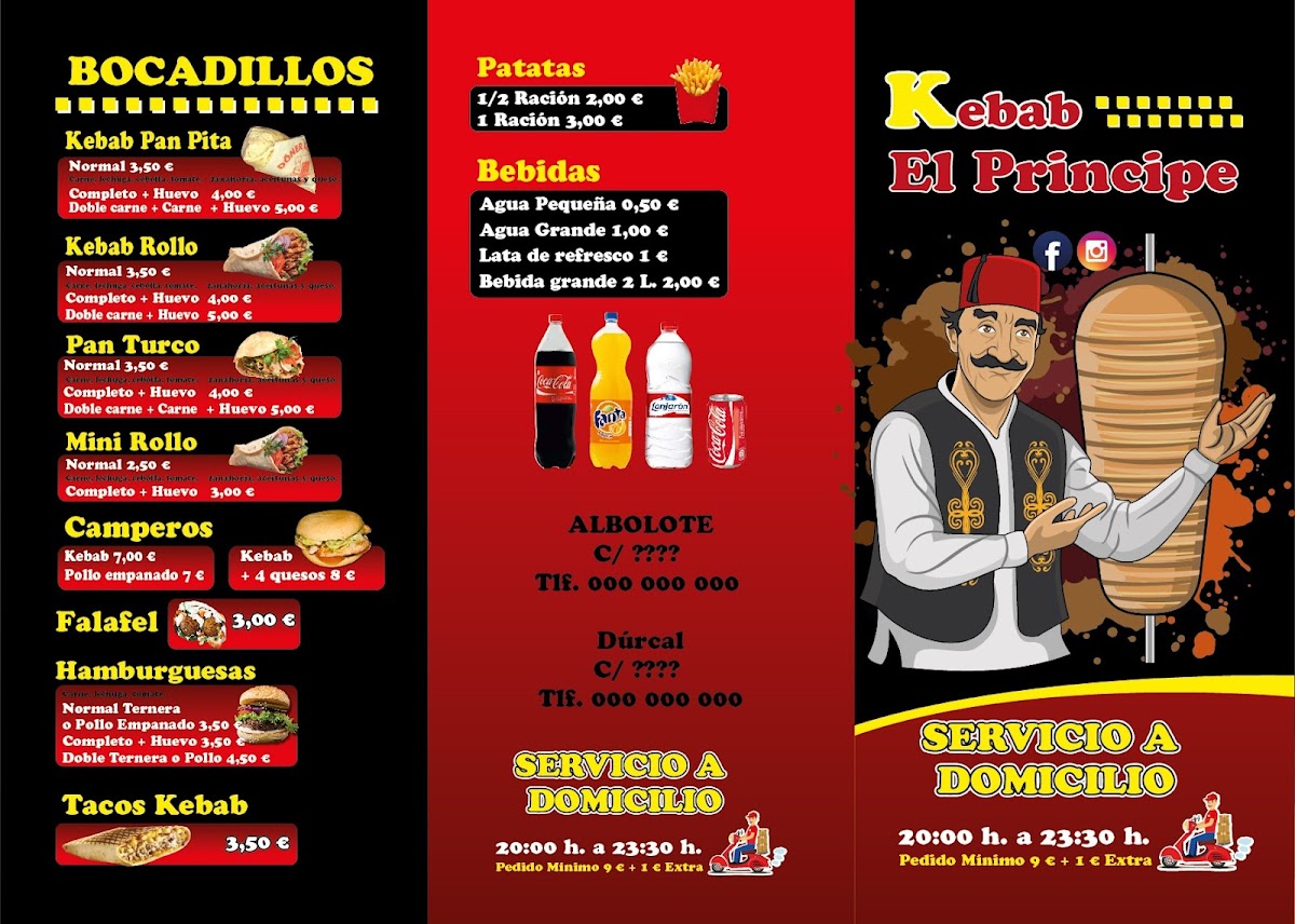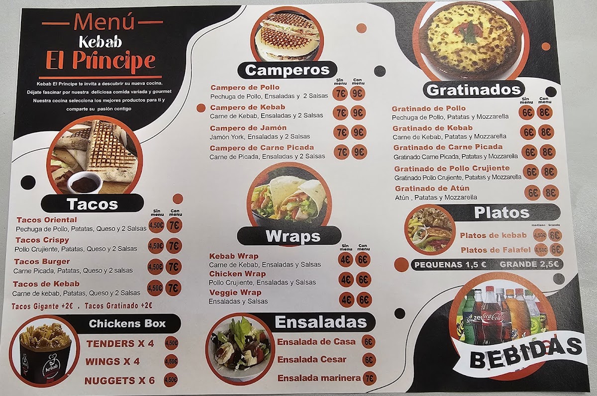 Overall, the menu at Kebab Taco El Príncipe Albolote offers a satisfying blend of hearty portions and bold, comforting flavors that cater to a wide range of tastes. The Menú de Media Luna stands out as a well-rounded option for those wanting variety, combining different elements of the kitchen into one fulfilling experience. Meanwhile, the Campero Pollo Empanado delivers a crispy, flavorful take on a classic chicken sandwich, balancing texture and seasoning nicely. For something a bit more indulgent, the Tacos de Kabab Con Salsa de Queso bring together tender, spiced meat with a rich, creamy cheese sauce that elevates the dish beyond the ordinary. Altogether, the menu reflects a casual yet thoughtfully curated selection, ideal for anyone looking for satisfying street-food-inspired meals with generous flavors and approachable pricing.